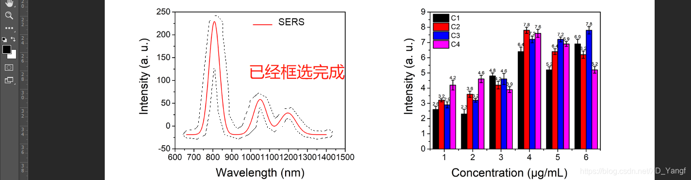 框选结束后,发现,其实比色皿部分地方磁性吸附判断不够准确,可能会将需要的部分框选较少。