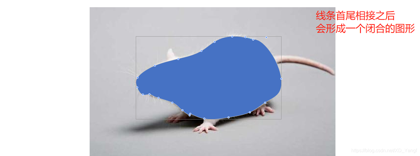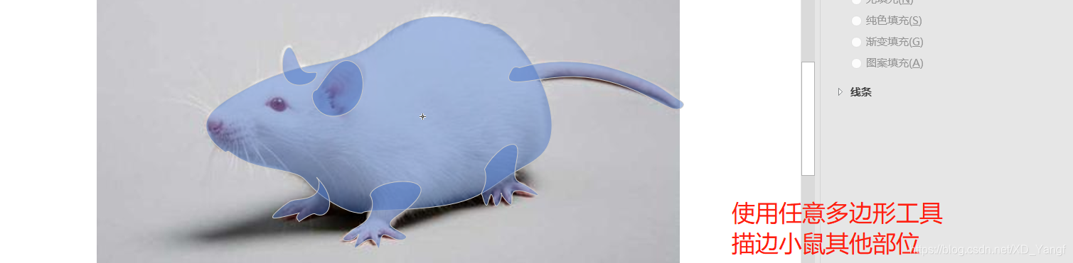 如下图所示,我们已使用任意多边形工具将小鼠其他部位都描边完成。