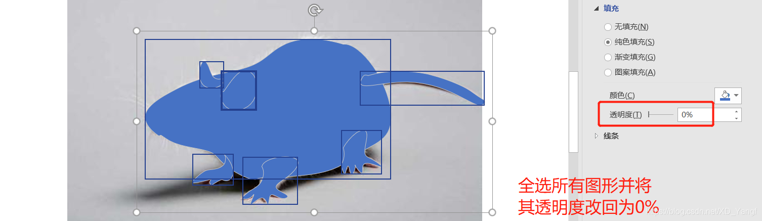 接着,可全选全部图形,并将这些图形的透明度暂时统一改回为0%。