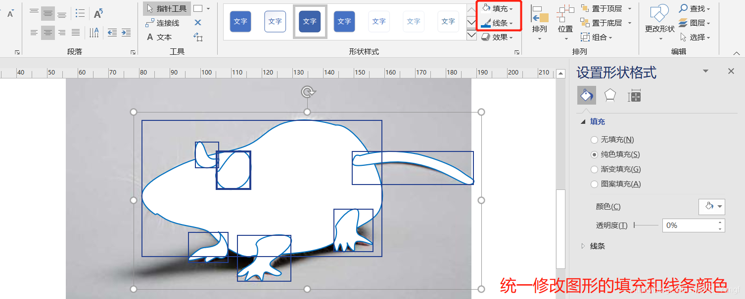 再接着,可以统一修改所有图形的填充和线条颜色。
