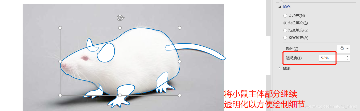 在描绘小鼠眼睛等其他部位前,我们继续将图形的主体部分透明化。