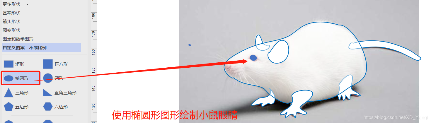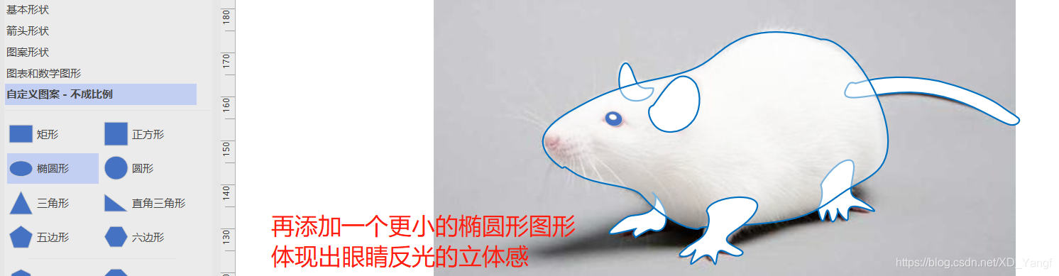 使用椭圆形图形给小鼠填上眼睛。