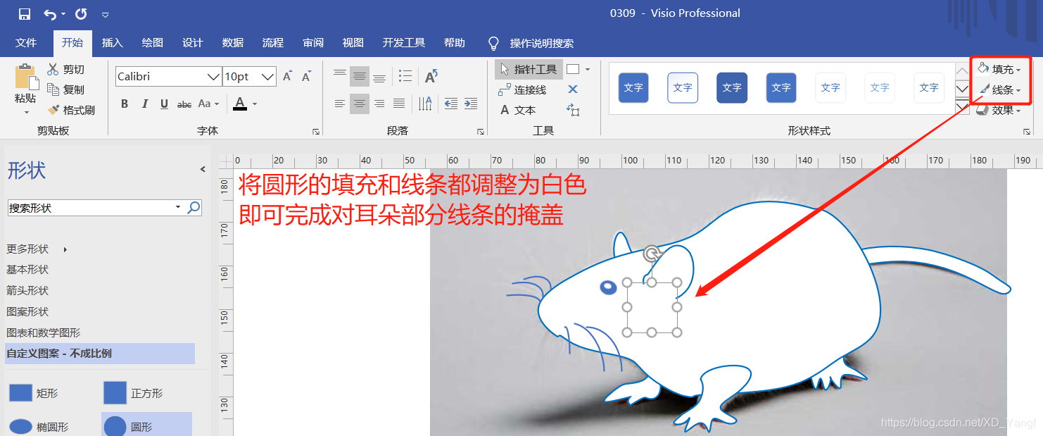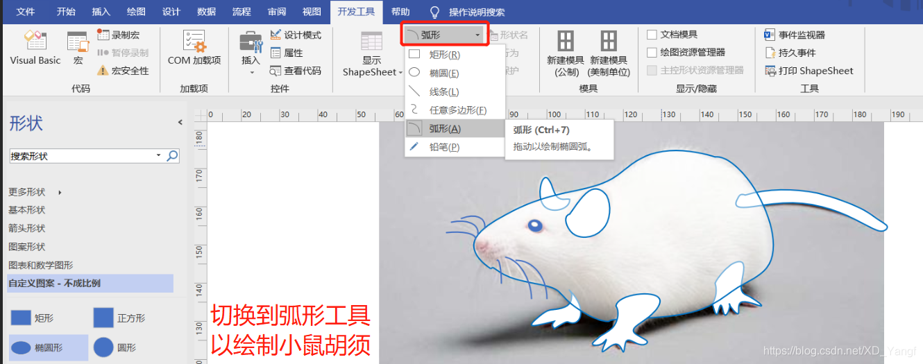 此篇,我们来分享使用Visio的任意多边形工具绘制小白鼠简图。