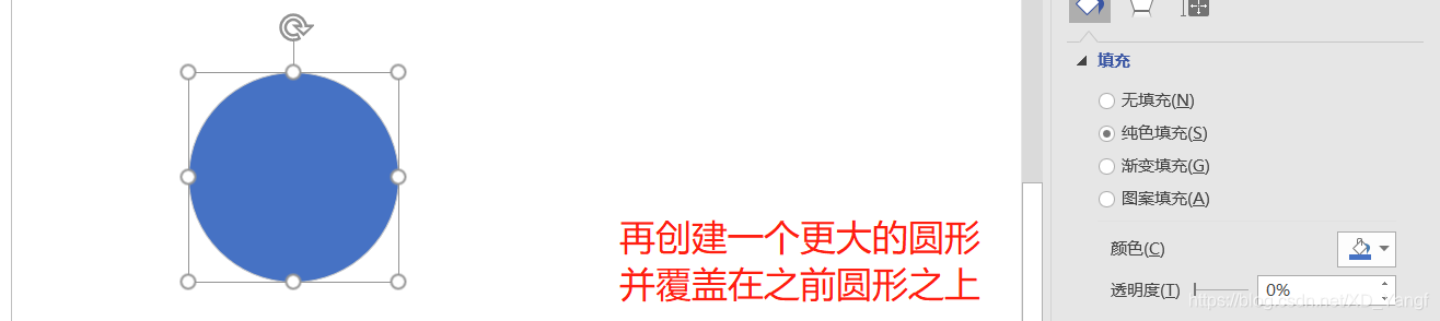再创建一个更大的圆形,并移动至之圆形的上方。