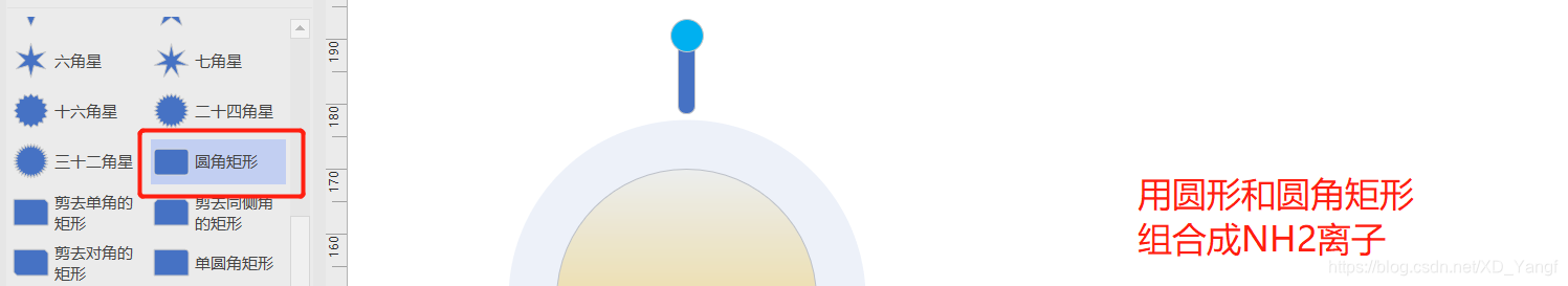 绘制一个圆形和圆角矩形,并将这两者组合在一起。