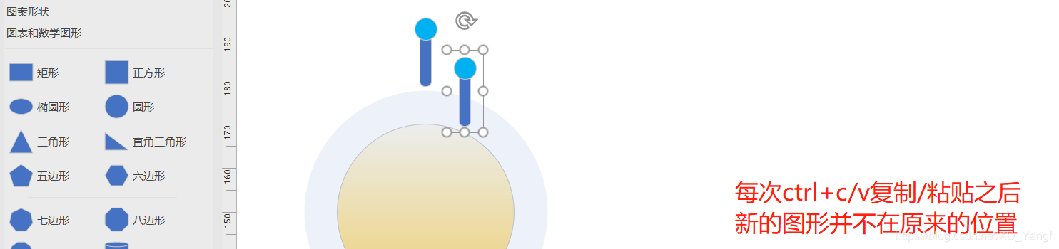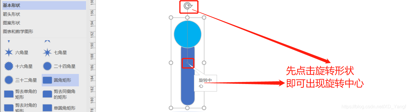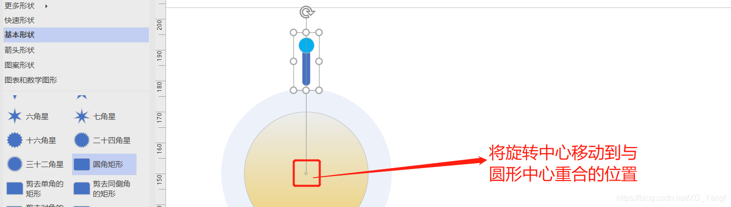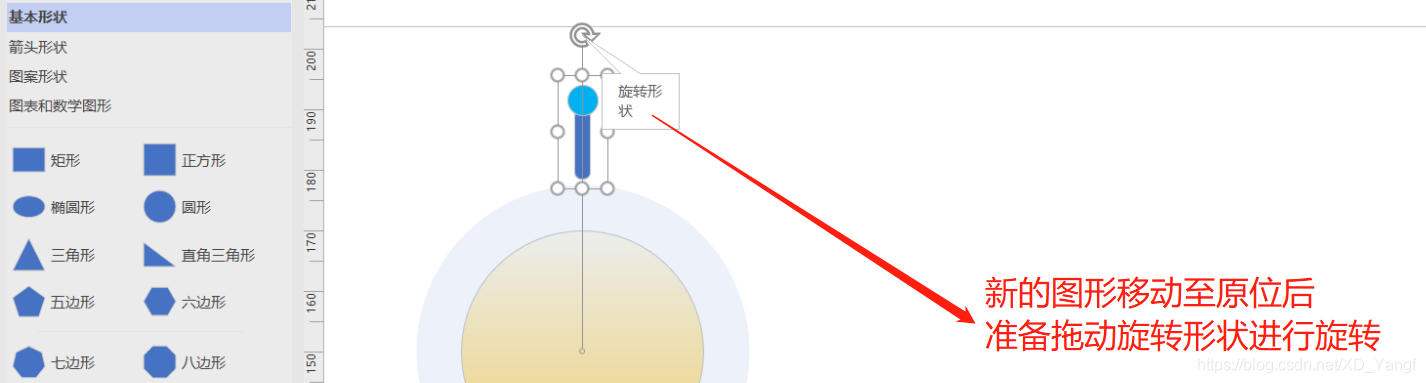将新图形移动到原位后,准备拖动旋转形状进行图形的旋转。