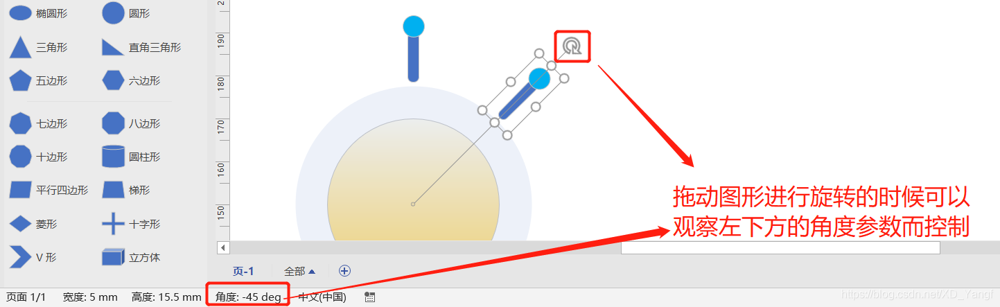 接着,拖动旋转形状发现,此时的图形会绕着UCNP的圆形中心旋转。旋转的时候,可以观察界面左下角的角度参数变化,而决定旋转的程度。