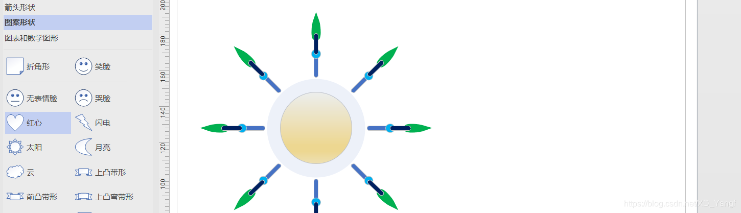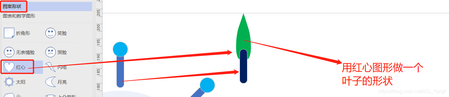 在图案形状库中,找到红心,调整其尺寸,做成一个叶子形状,然后与圆角矩形组合。