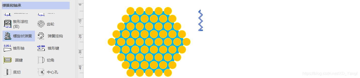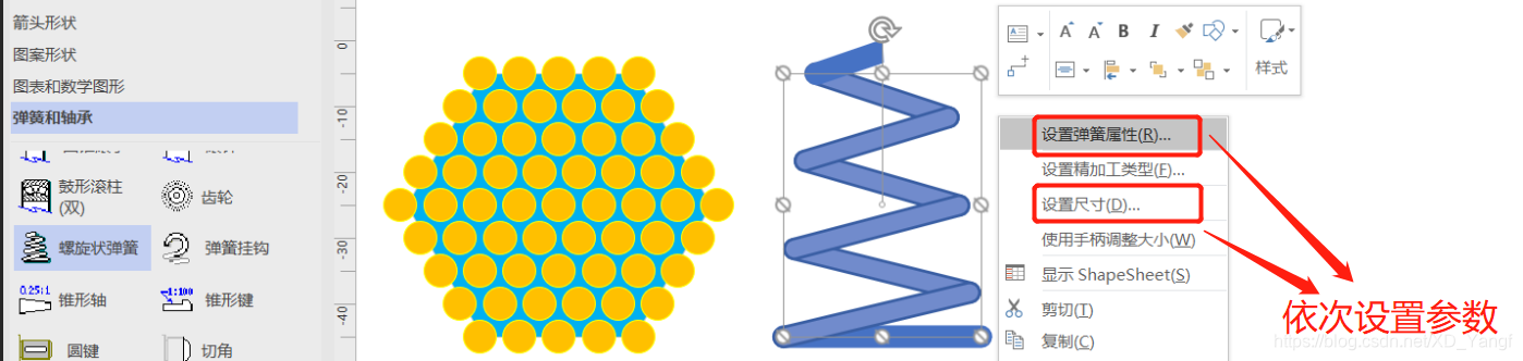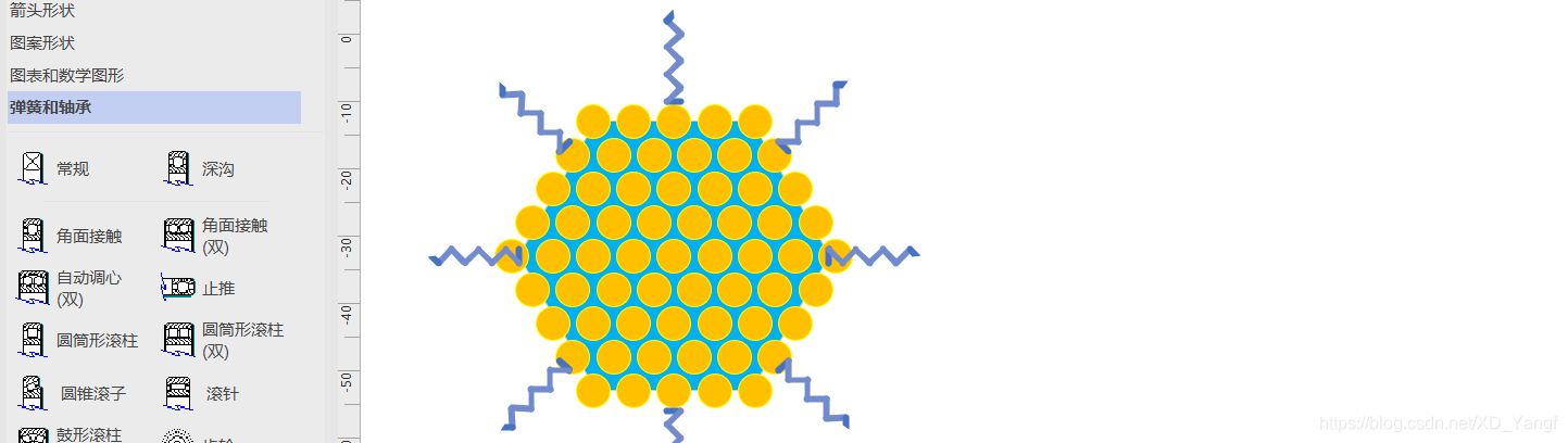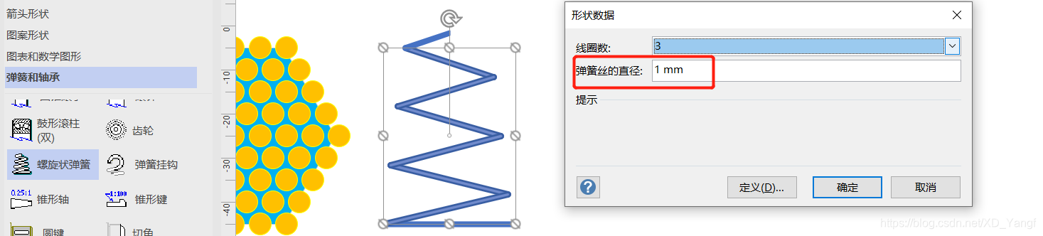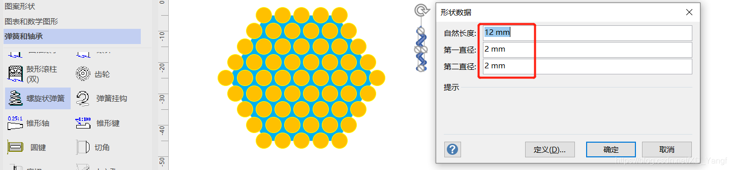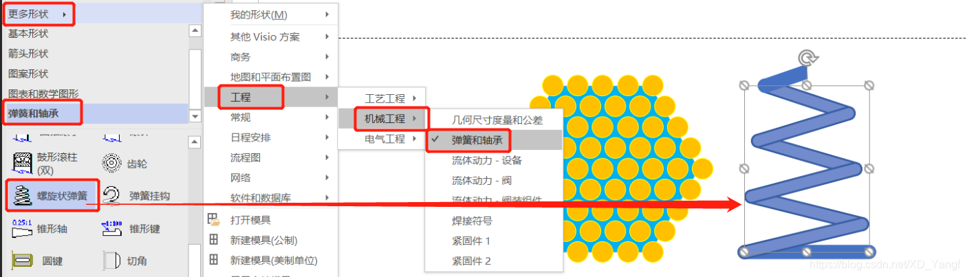 我们准备用弹簧这样的螺旋结构绘制PEG。先点击更多形状——》工程——》机械工程——》弹簧和轴承,以打开弹簧和轴承图库。接着,创建一个螺旋状弹簧。