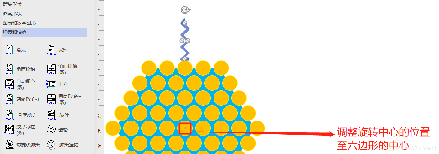 将PEG移动到合适位置,并将其旋转中心调整到六边形中心。