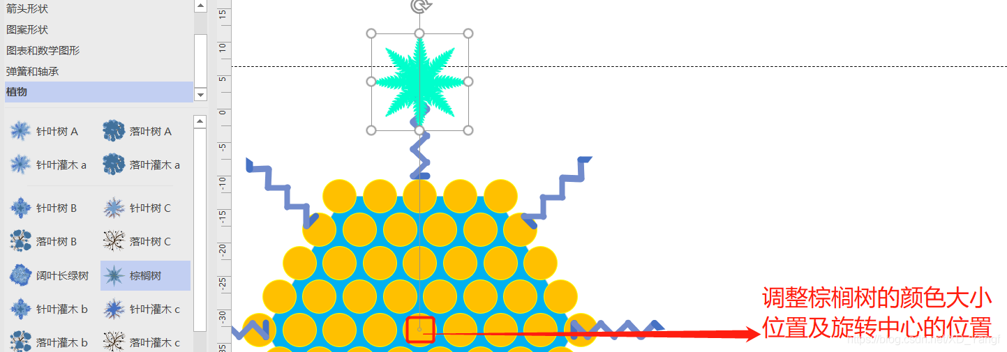 改变棕榈树图形的颜色,并调节其位置和旋转中心位置。