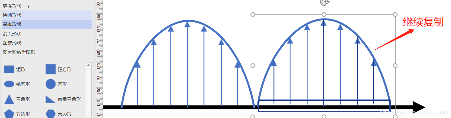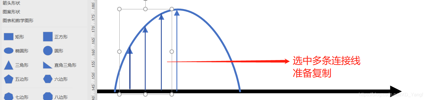 同时选中曲线和直线连接线并进行复制。