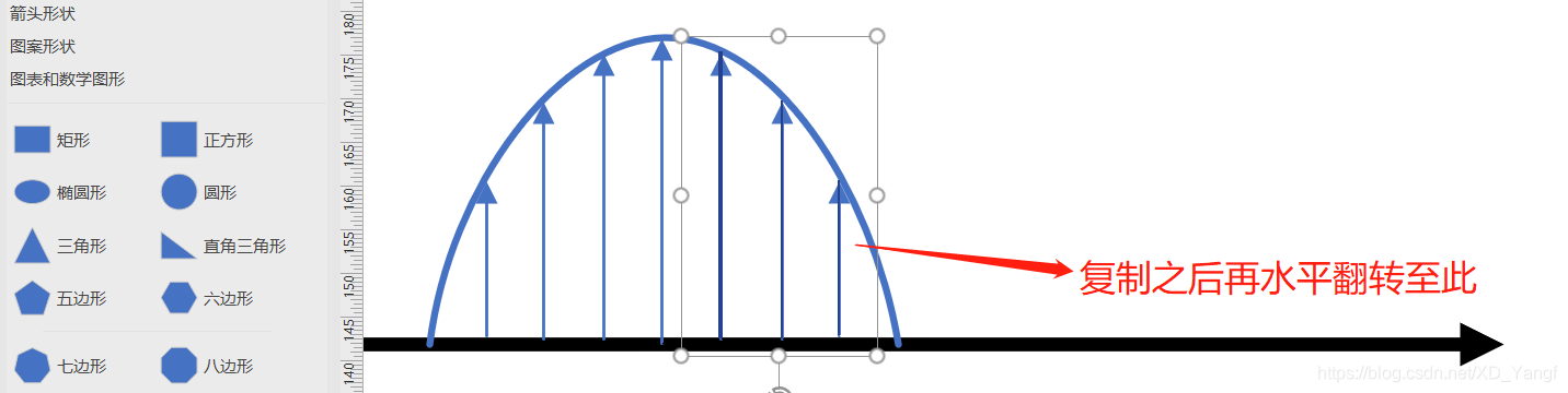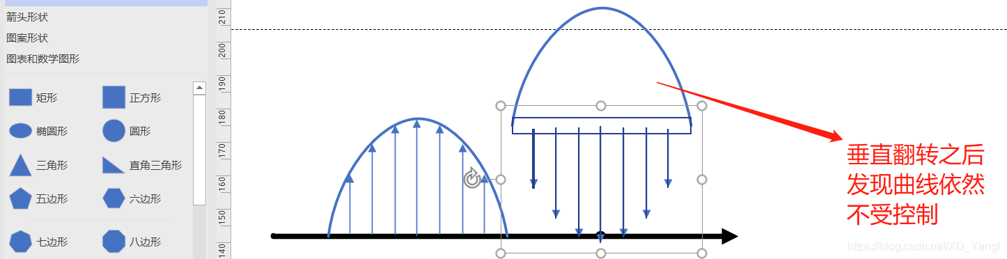 将刚才复制的几个连接线同时垂直翻转,但结果是,直线连接线变化没有问题,而曲线连接线依然不受控制。