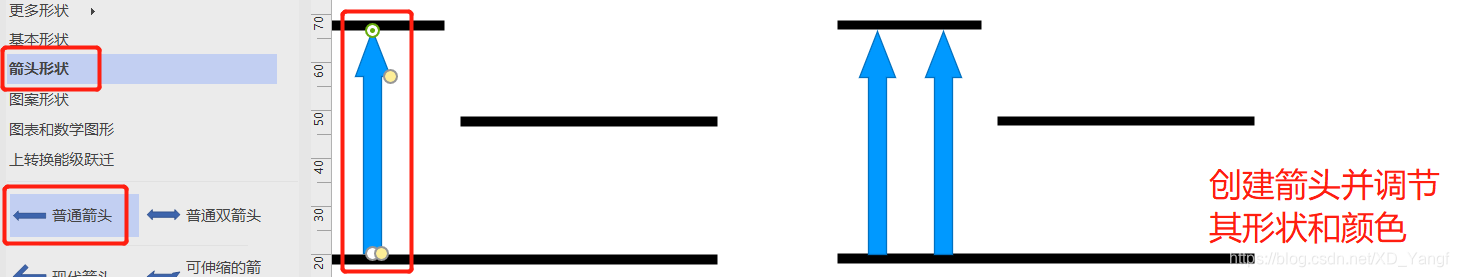 此时,我们选择从箭头形状库中拖出普通箭头,来创建图形类的箭头。