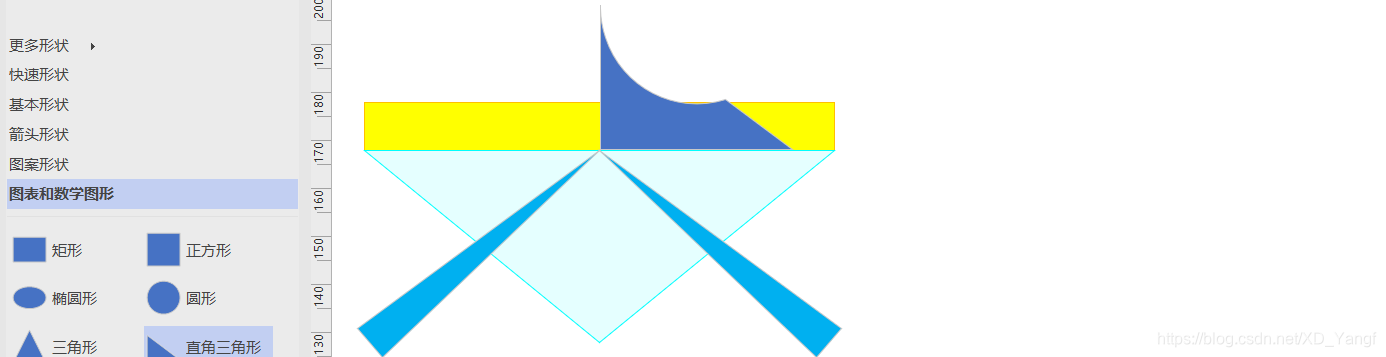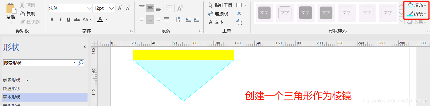 接着,创建一个三角形作为产生全反射的棱镜。同理,线条颜色给一个比填充色深一点的蓝色。