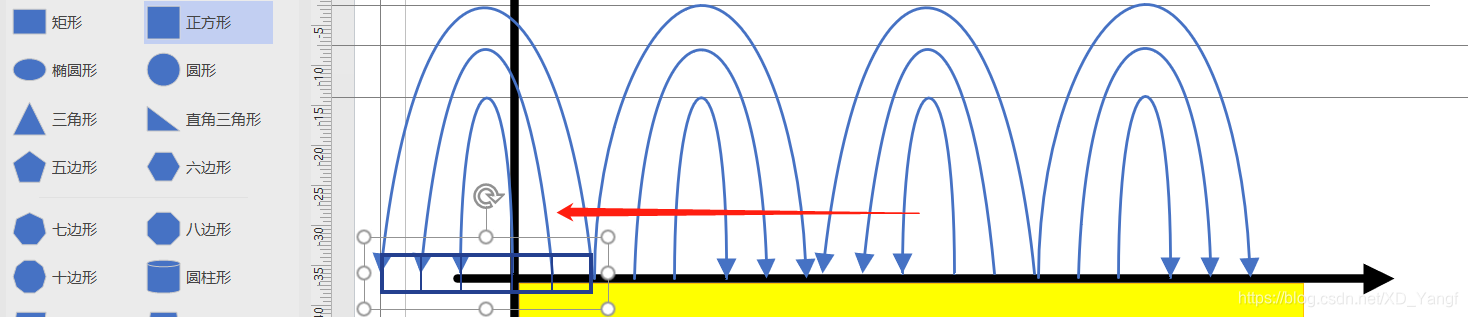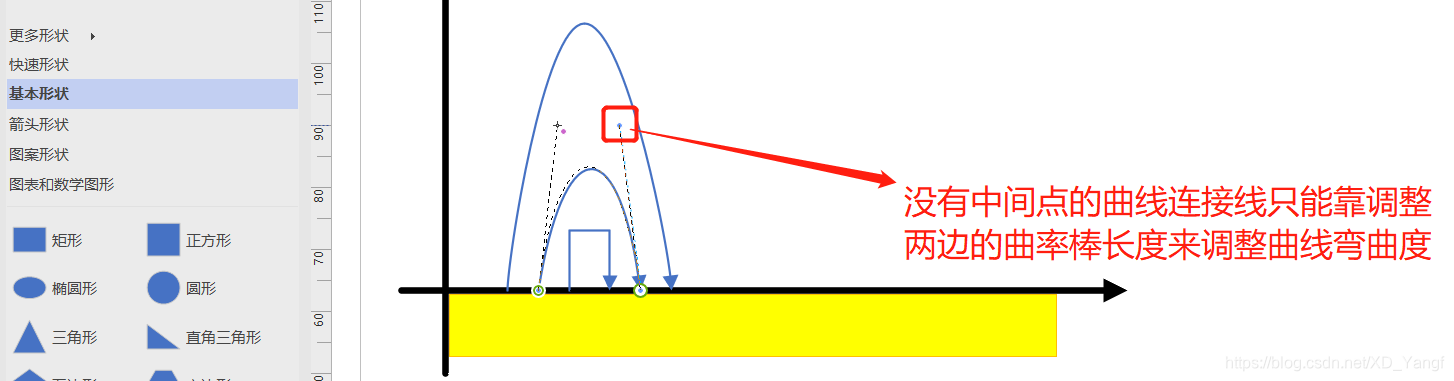 而对于没有中间点的曲线连接线,只能通过两边的弯曲棒来调整曲线的长度和弯曲度。