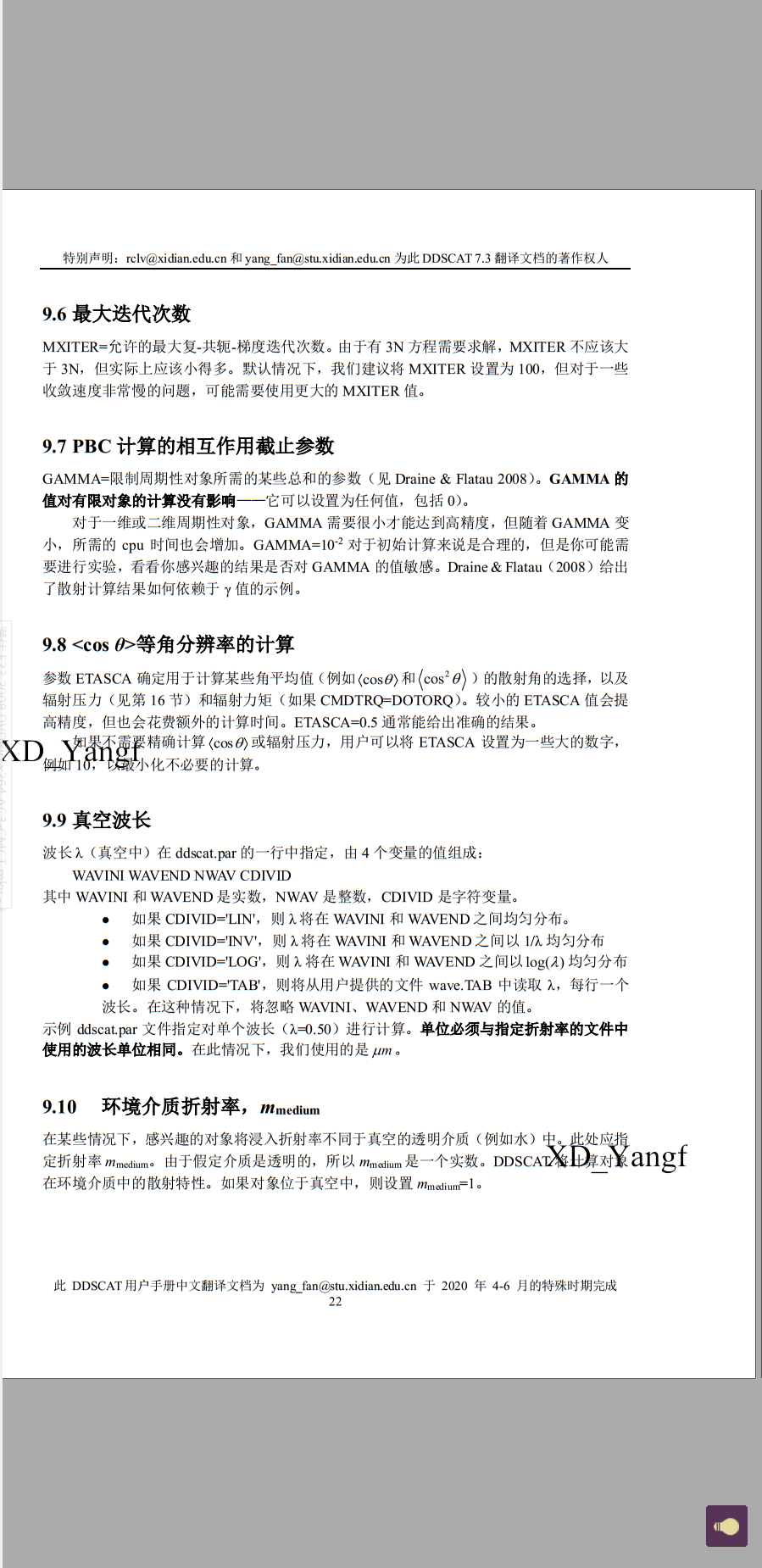 【DDSCAT——离散偶极近似 用户手册中文稿 0202】