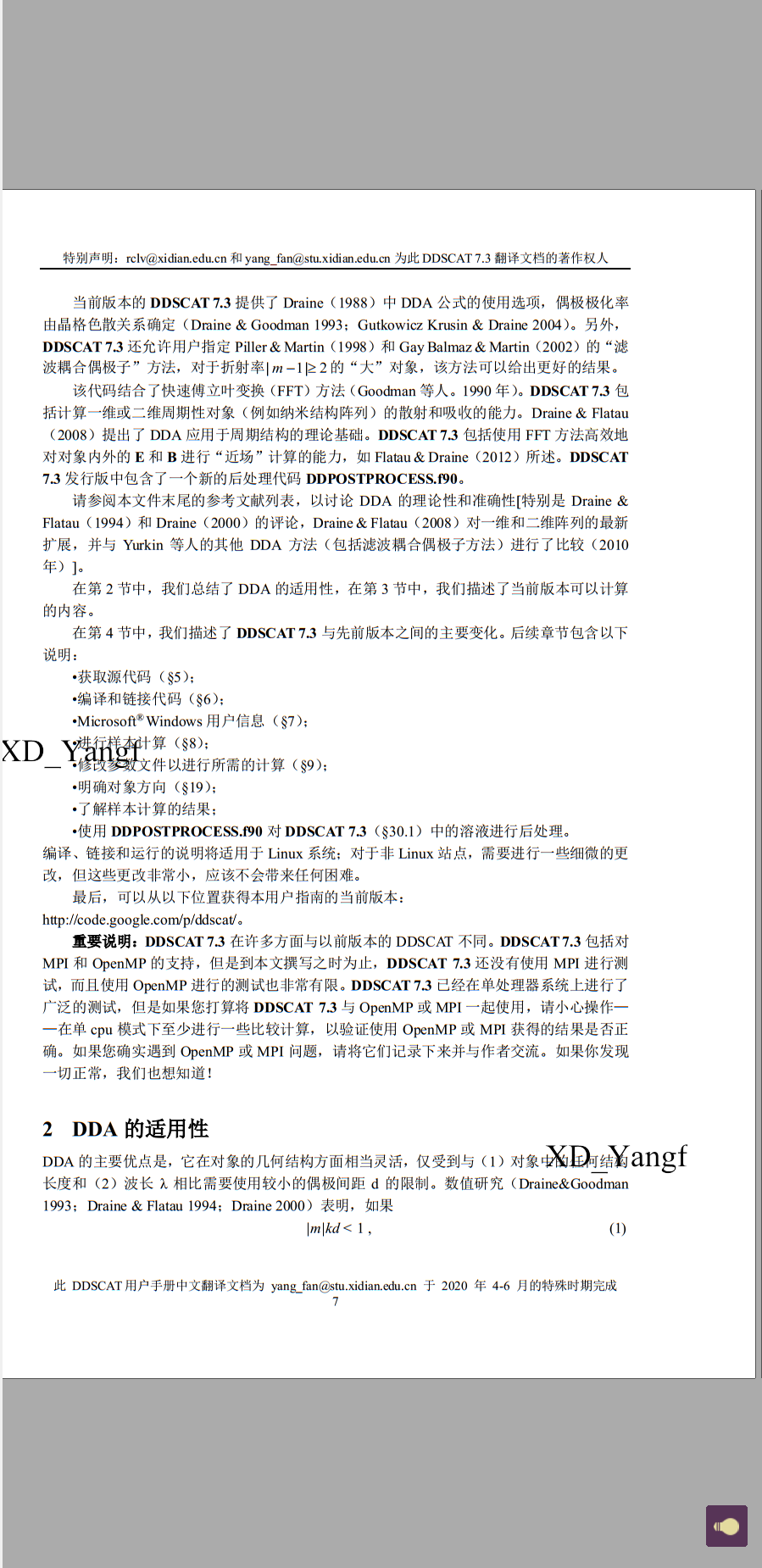 【DDSCAT——离散偶极近似 用户手册中文稿 0201】