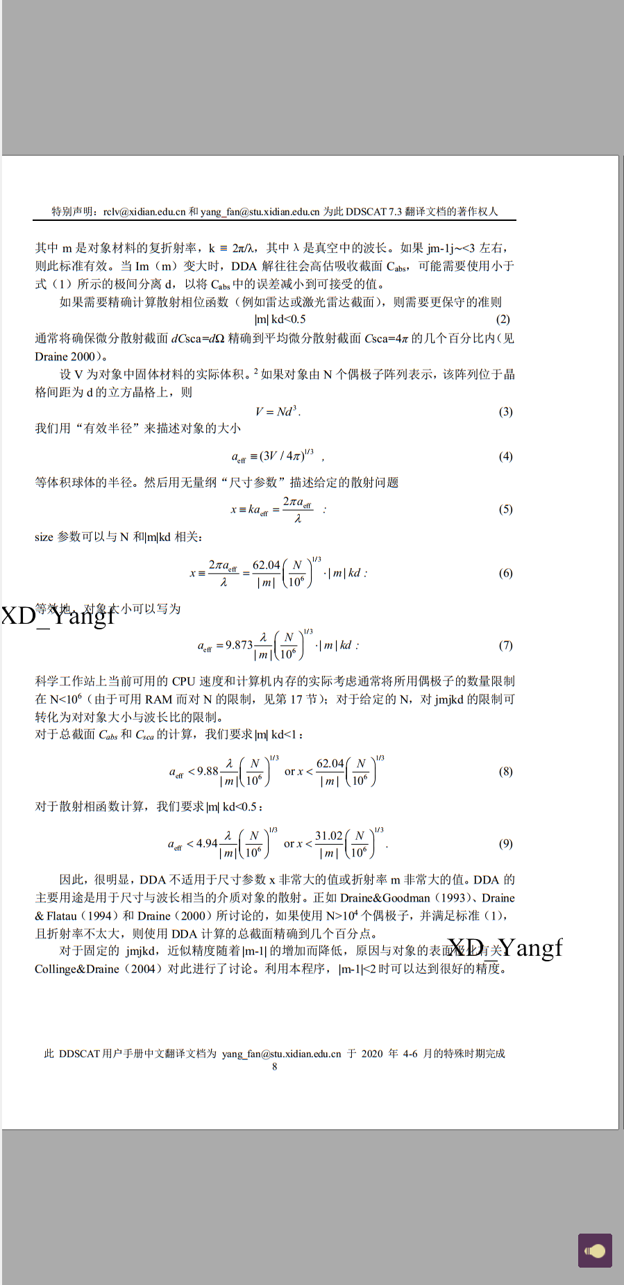 【DDSCAT——离散偶极近似 用户手册中文翻译稿 0203】