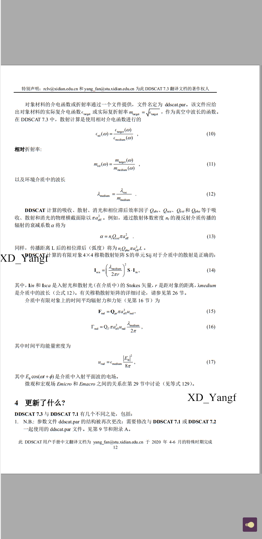 【DDSCAT——离散偶极近似 用户手册中文翻译稿 0202】
