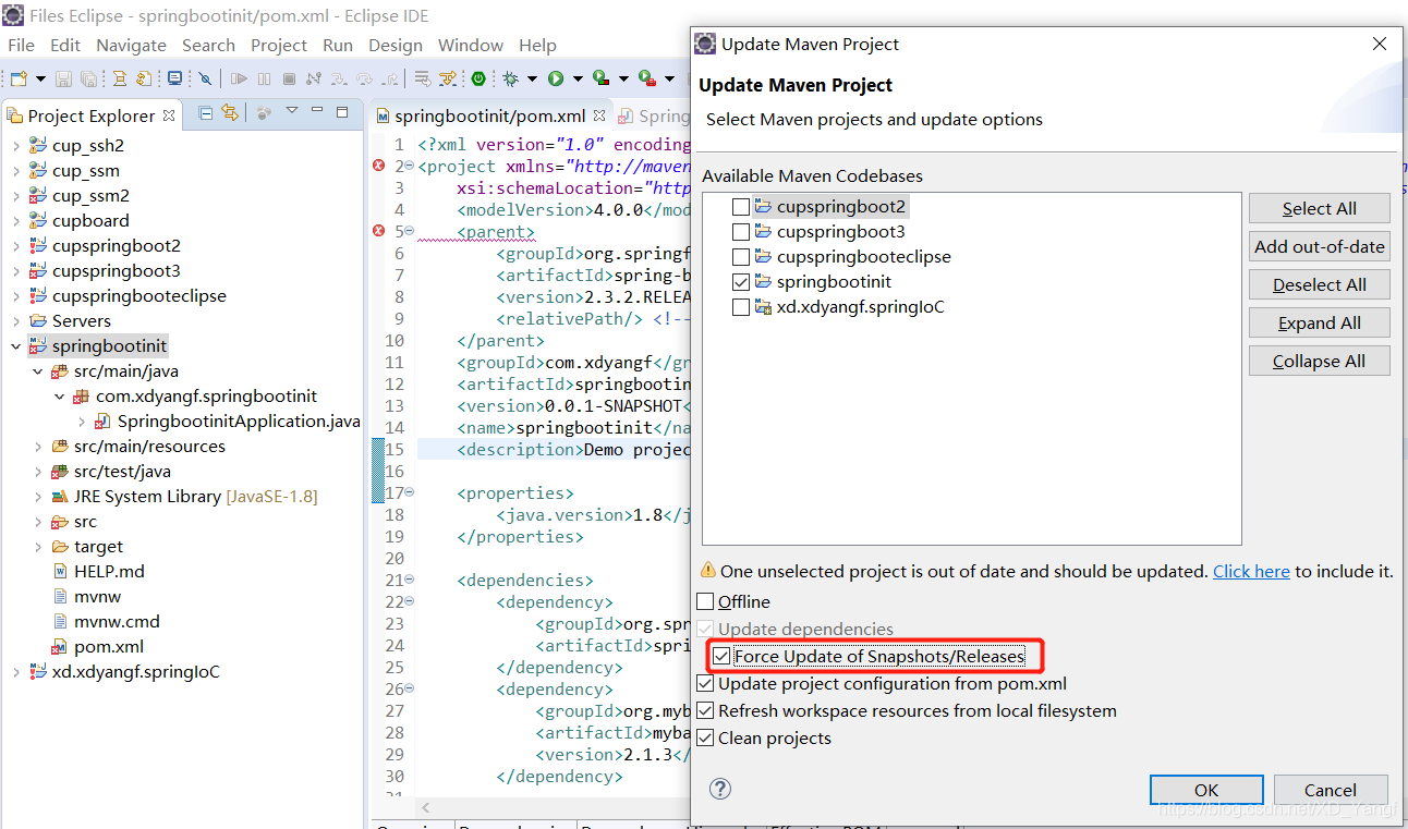 勾选Force Update of Snapshots/Releases,并点击确定。