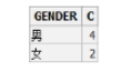 SELECT gender(属性), count(*) as C(聚合属性重命名) employee(表名) GROUP BY gender;