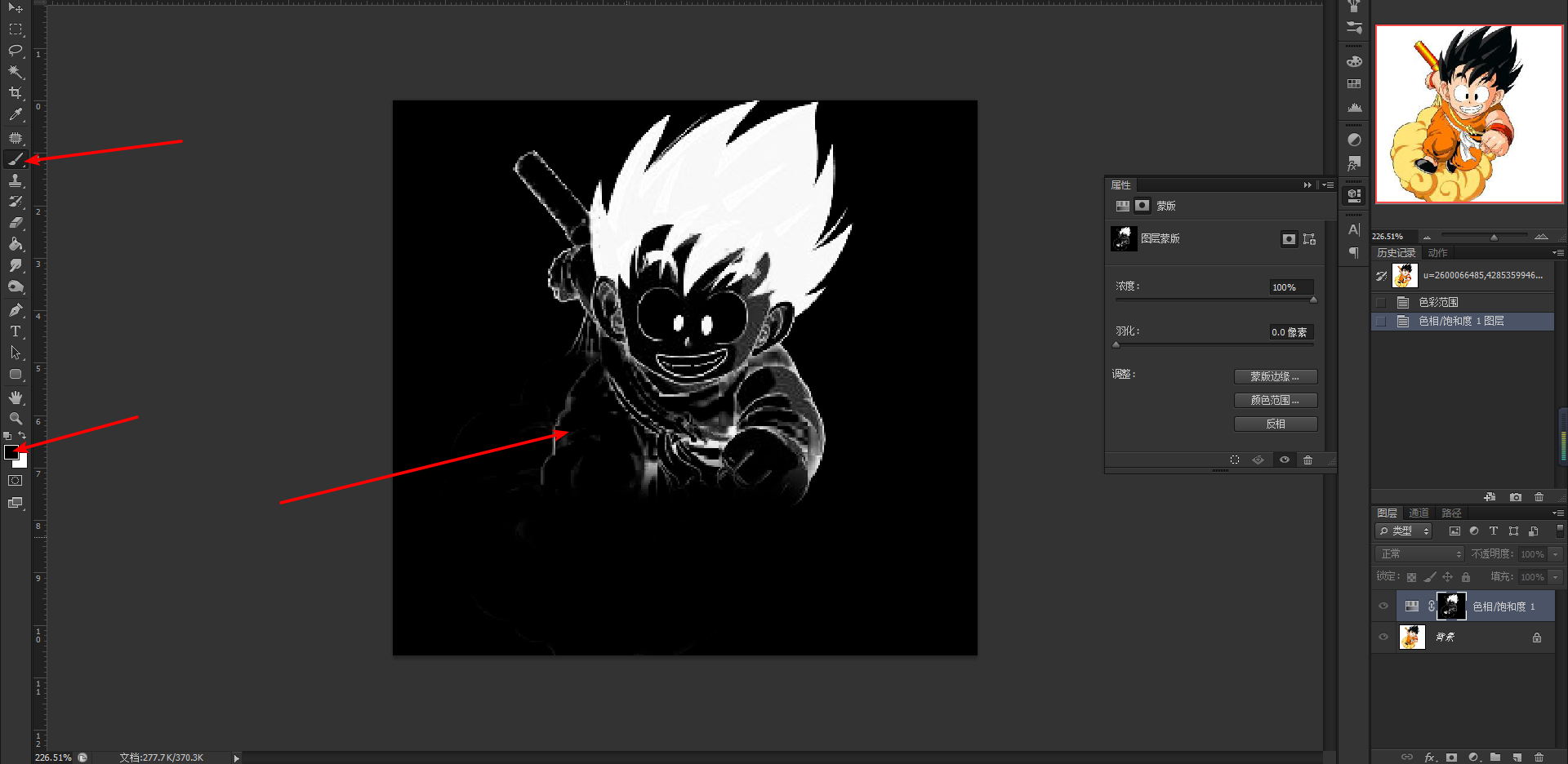6、选择 “画笔”工具,前景色为黑色,然后去涂抹当前操作界面中的白色区域;