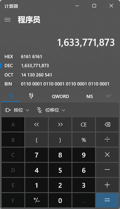 可以看到,var[0]接收的值是1633771873,我们将其转成16进制(看下面计算器的HEX的值)