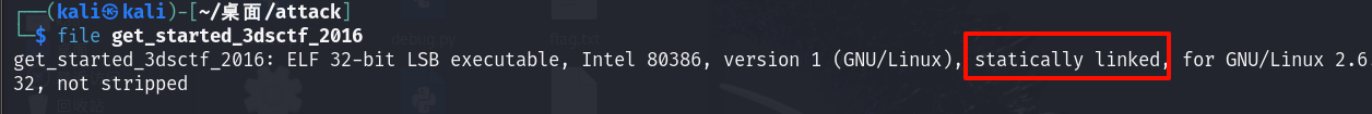 首先,这是一个静态链接的程序,有两种办法查看: