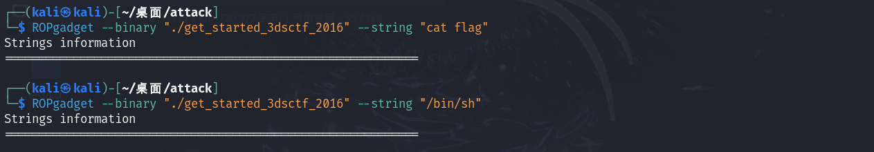 接下来再找一下/bin/sh或cat flag类似的字符串: