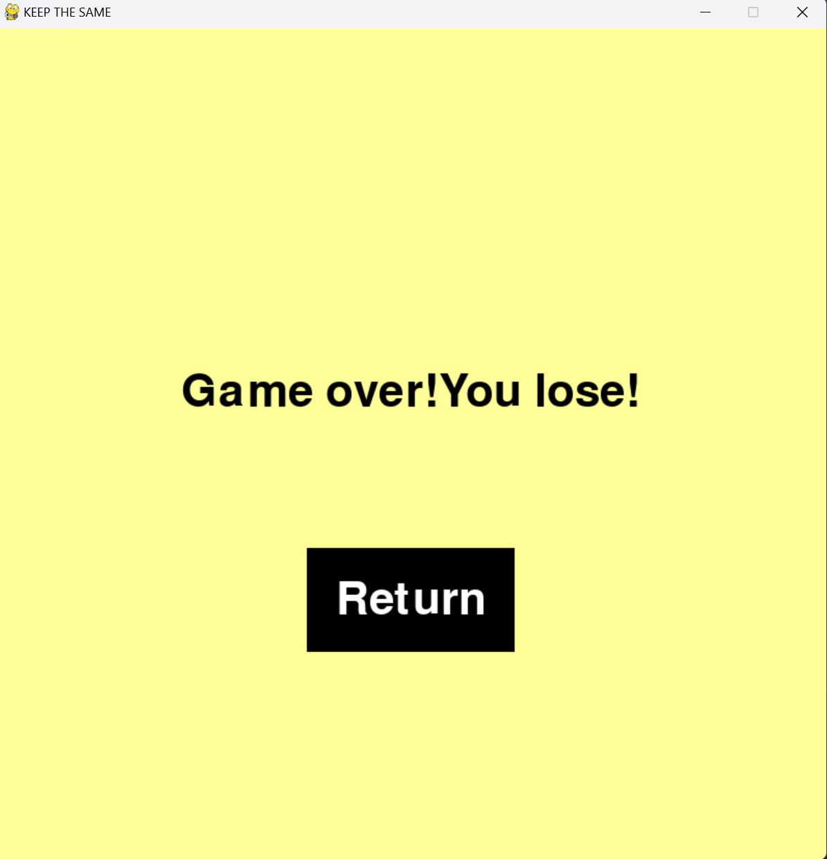 - 时间倒数结束,但图片没有完全消除,则得到失败画面点击 return 可以重返难度选择界面,不想继续可以点击右上角的 “x”