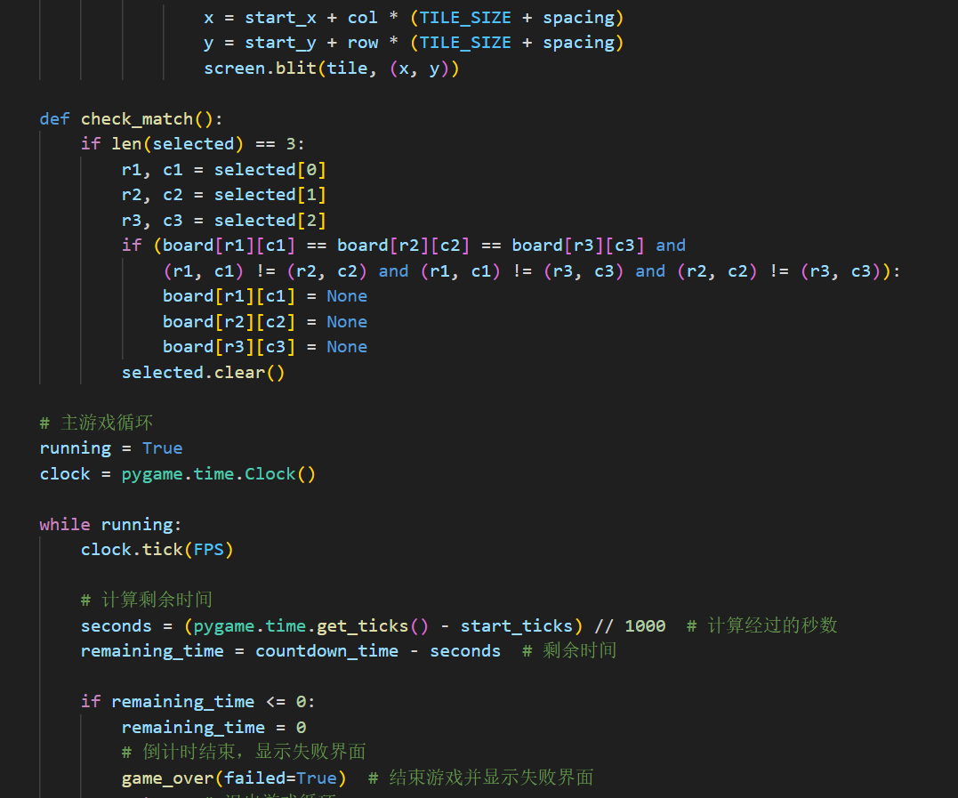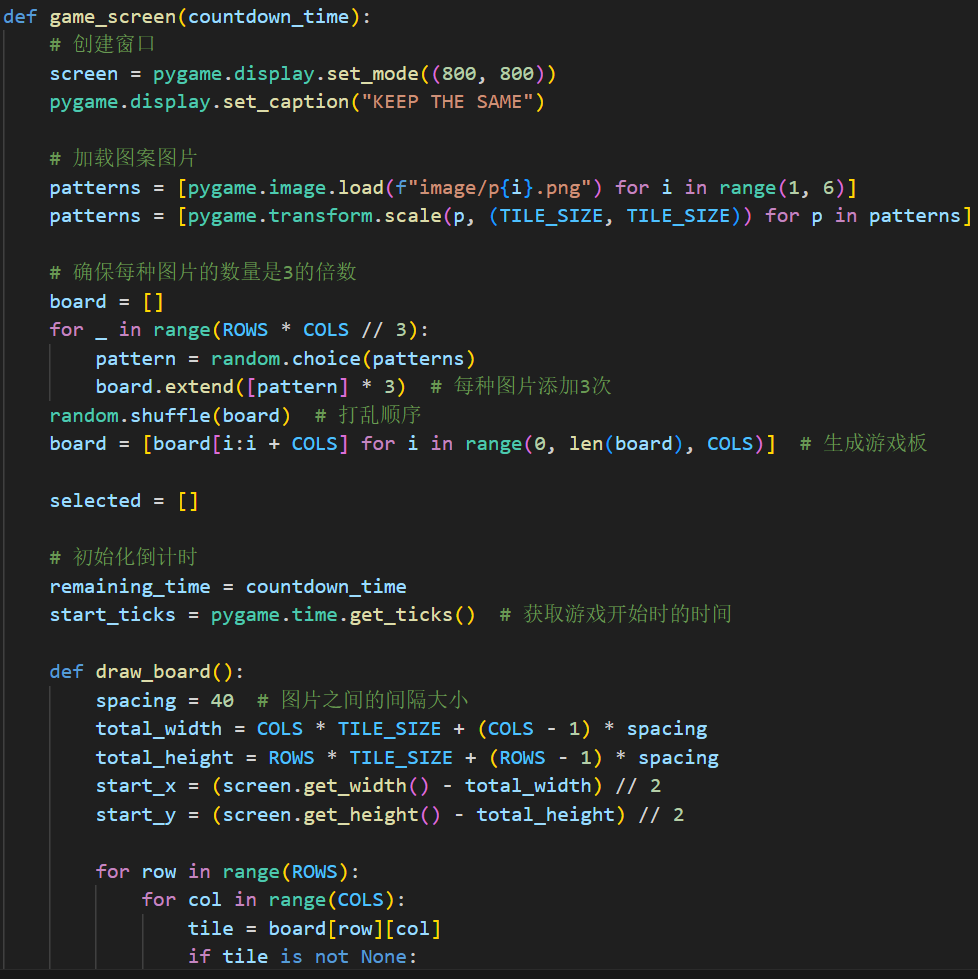 - 这段代码由作业要求里的示例代码改善完成,由我凭借一点点的python知识和gpt协同改善。原先想完成羊了个羊类似的图片叠加效果,但是因为基础太差和因为是由其他代码修改而来导致没办法实现