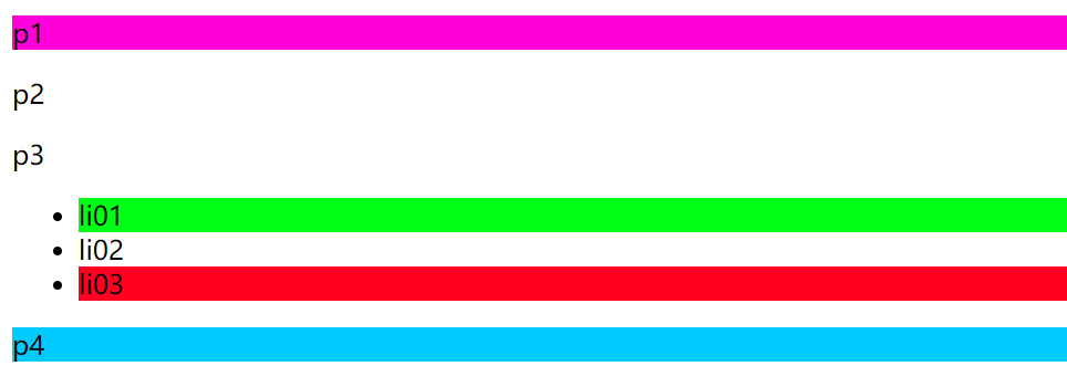 例如: 再写一个 p 标签 那么是无法让两个标签 拥有不同颜色的