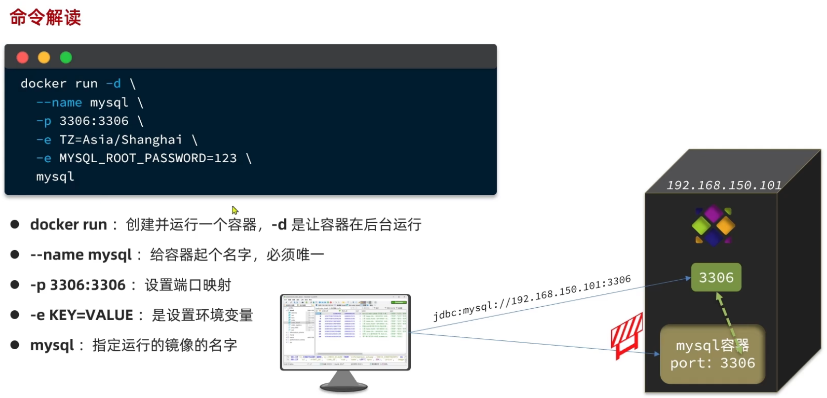 | docker run | 创建并运行容器(不能重复创建) | docker run |