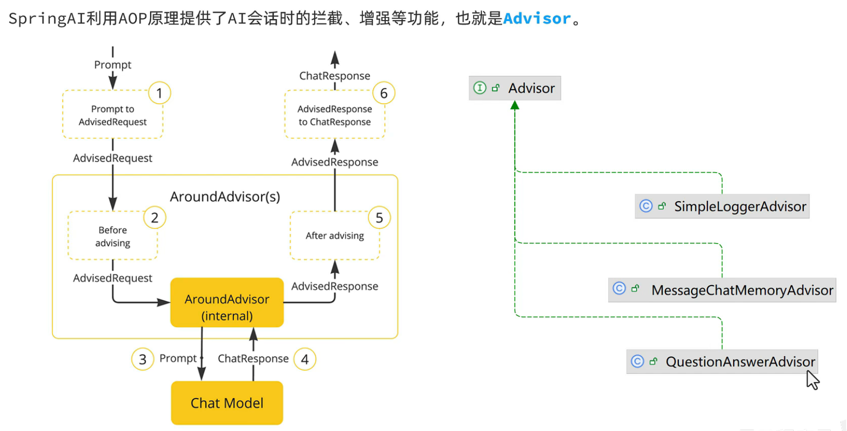 SpringAI 中所有的日志和增强功能都由 Advisor 实现