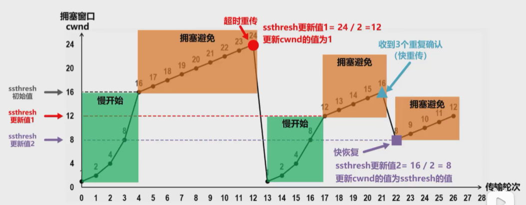 - 当cwnd=ssthresh时,既可以使用慢开始算法,也可以使用拥塞避免算法