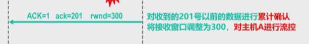ACK:TCP报文段首部中的标志位,取值1表示这是TCP确认报文段ack:TCP报文段首部中的确认号字段,取值201表示序号201以前都正确接受,等待接受201后的数据rwnd:TCP报文段首部中的窗口字段,取值300表示,接受窗口改为300