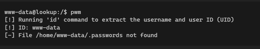 - 如果这里pwm文件调用的id是系统默认/usr/bin/id或/bin/id,这里伪造id命令就没用;