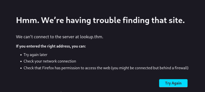 原因是.thm不是个标准域名后缀,一般用于TryHackMe这样的渗透测试平台或内部网络环境。所以直接访问 DNS 会无法解析;