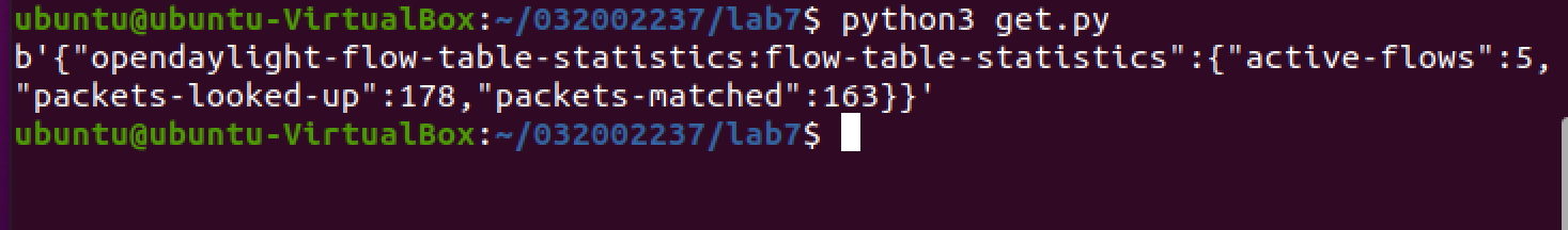 (4)编写Python程序,调用OpenDaylight的北向接口获取s1上活动的流表数。