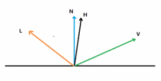 BlinnPhong模型求镜面反射的方法是:由指向光源的向量L和指向摄像机的向量V求和得到一个半角向量H,然后求法线N与半角向量H的点积,值越大表示镜面反射高光越强。(避免了求反射向量R的过程,直接通过N,H的点积求得镜面反射高光值)