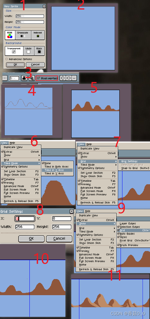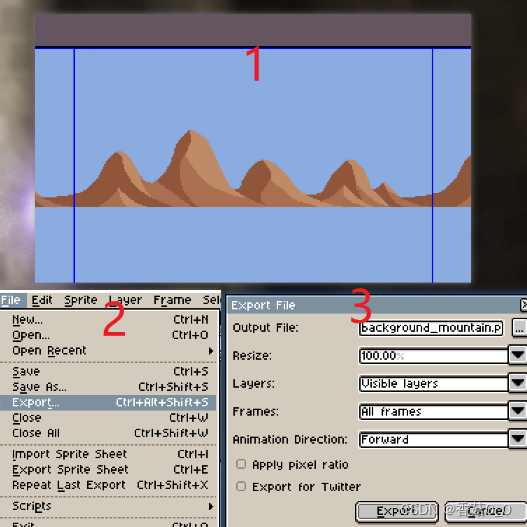 在2D游戏通常需要一个循环的背景图,通过本文章可以学习到使用Aseprite软件制作山脉背景。