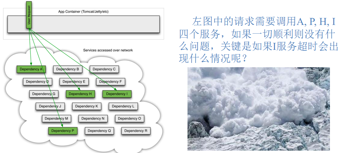 多个微服务之间调用的时候,假设微服务A调用微服务B和微服务C,微服务B和微服务C又调用其它的微服务,这就是所谓的“扇出”。如果扇出的链路上某个微服务的调用响应时间过长或者不可用,对微服务A的调用就会占用越来越多的系统资源,进而引起系统崩溃,所谓的“雪崩效应”.