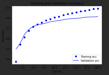 plt.plot(epochs, acc, 'bo', label='Training acc')
