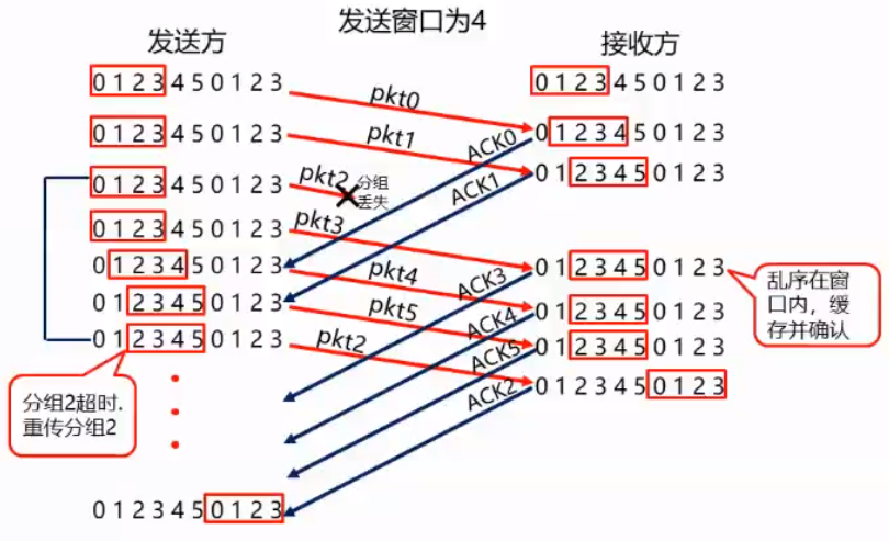 ,若收到的分组在接受窗口内且乱序,缓存该分组