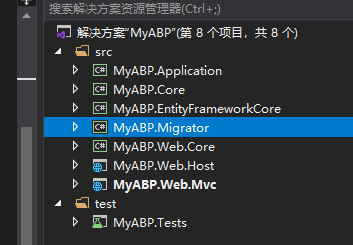 MyABP.EntityFrameworkCore:基础设施层(用于跟数据库打交道,1、在MyABPDbContext添加要新增或修改在MyABP.Core层新增或修改的实体 eg: public DbSet<Task> Tasks { get; set; } 2、在控制台使用命令Add-Migration "Initial" 更新需要迁移的 3、在控制台使用命令 update-database)