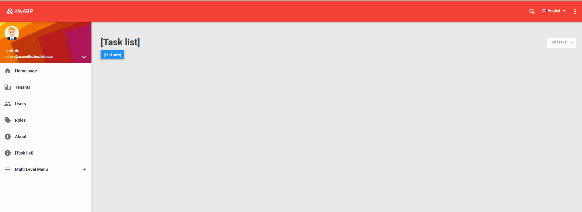 .AddItem( new MenuItemDefinition( "TaskList", L("TaskList"), url: "Tasks", icon: "info"//图标 // requiredPermissionName: PermissionNames.Pages_Roles权限 ) )