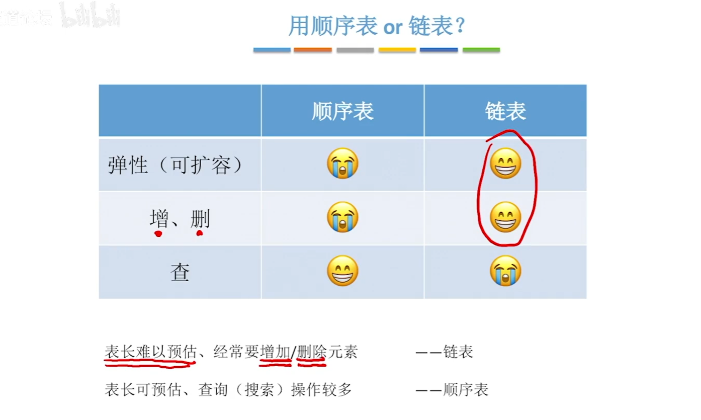链表:申明头指针(和头节点);依次删除节点;插入/删除只需修改指针;查找永远O(n)