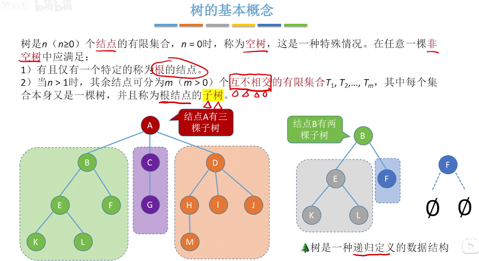 最后介绍一下森林,森林是由\(m(m \geq 0)\)棵互不相交的树组成的集合,如果把一棵树用作对一户人家的家谱的数据描述,那么就可以用森林来进行对全中国所有人家的家谱的数据描述