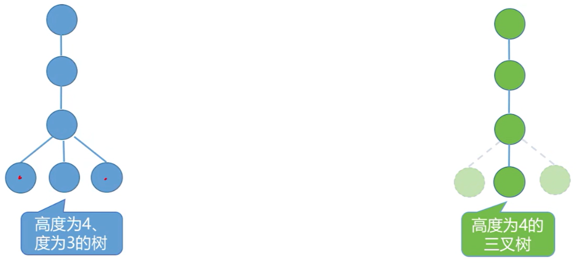 高度为4、度为3的树,最少节点数:\(4-1+3 = 6\);高度为4的三叉树,最少节点数为:4